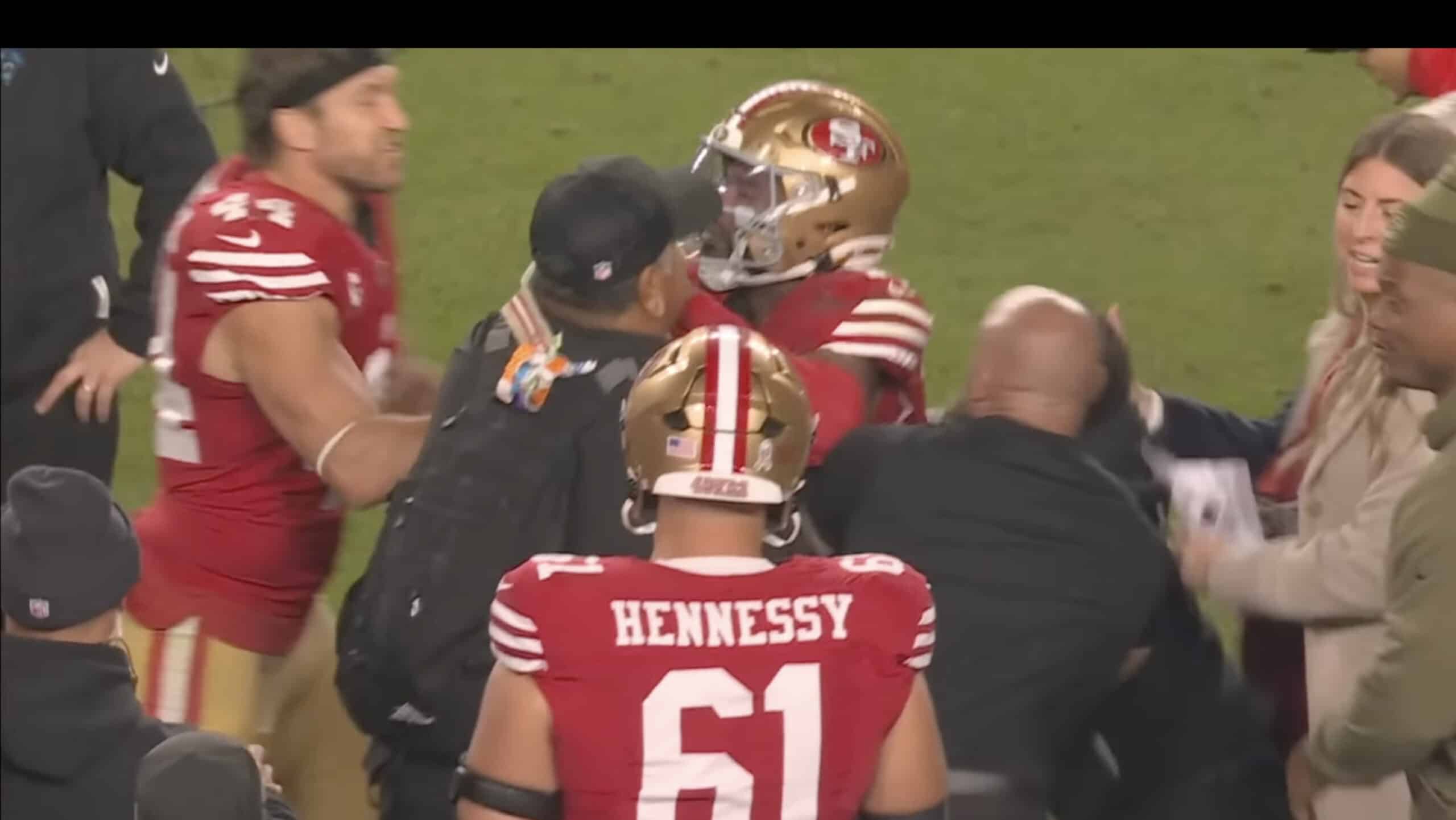 Kyle Shanahan: “Yeah the guy took a cheap shot and hit him in the balls. I was real proud of Jauan for not losing his mind out there.”